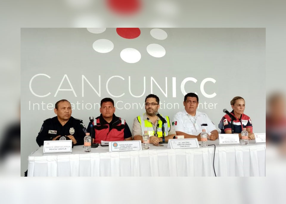 Simulacro de evacuación parcial en el Cancún International Convention Center (Cancún ICC).