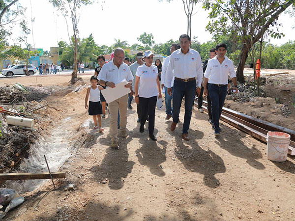 La Presidente Municipal Mara Lezama realizó un recorrido de supervisión de los avances de la construcción de la cancha de usos múltiples y del parque de la Supermanzana 202