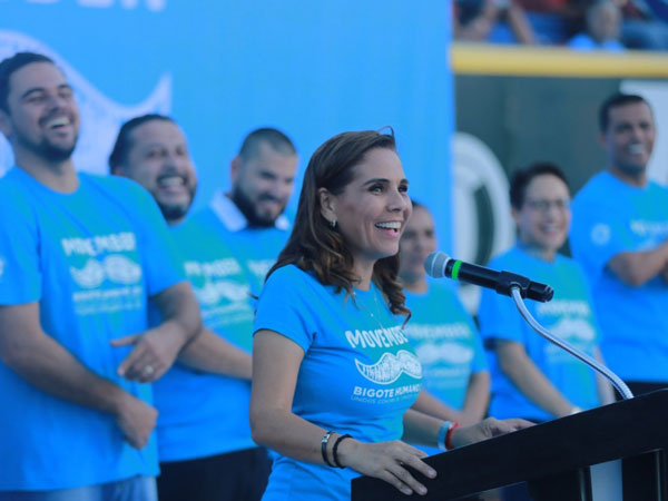 Cancún.- "Queremos crear conciencia en todos los hombres para que se cuiden, que acudan a realizarse el examen de próstata y así poder detectar o descartar casos de cáncer de este tipo, vamos a cuidarnos todos", resaltó la Presidente Municipal de Benito Juárez, Mara Lezama, al asistir a la representación del "Bigote Humano" en la cancha del Estadio de Béisbol "Beto ávila".