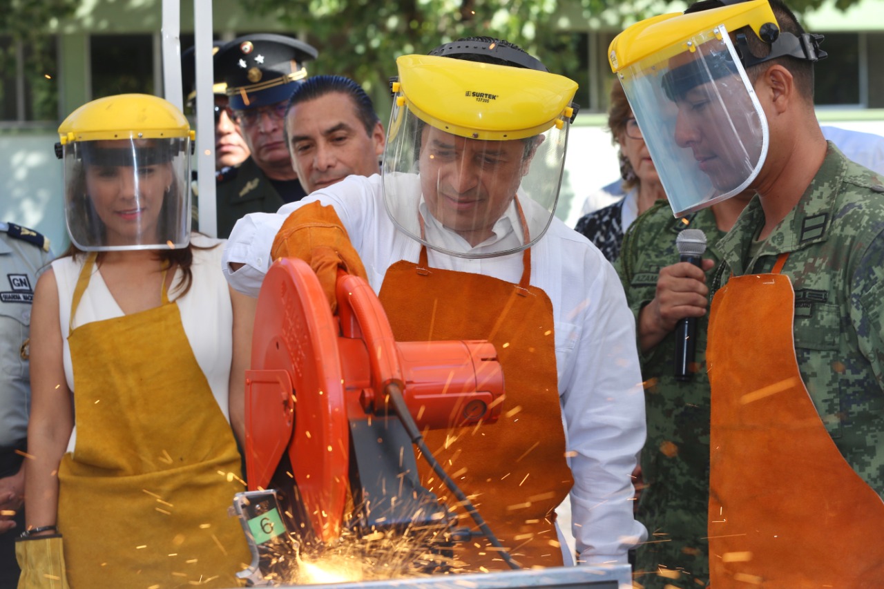 La "Ceremonia de Destrucción de Armamento Decomisado" fue encabezada por el gobernador Carlos Joaquín y el comandante de la X Región Militar, general brigadier Víctor Hugo Aguirre Serna, en la explanada del campo militar.