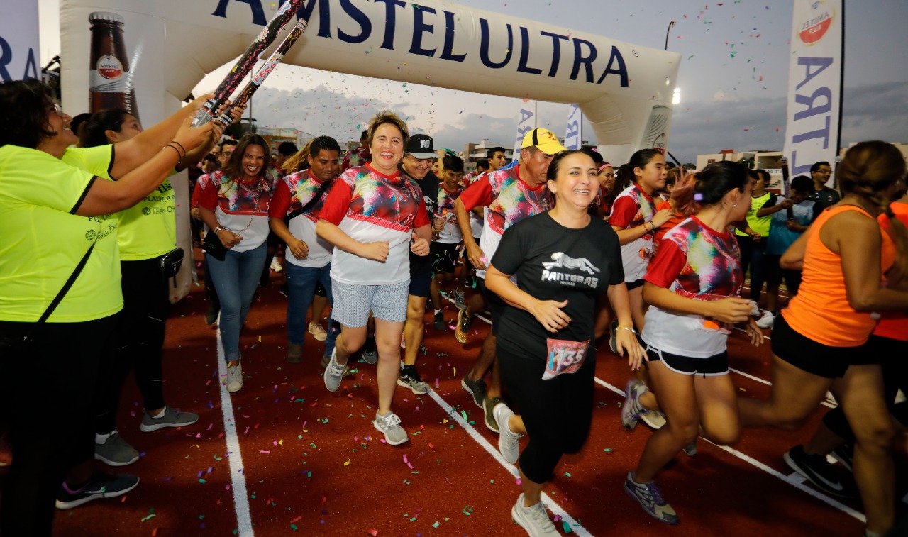 En ese marco, con la participación de 332 atletas y deportistas solidarenses (232 adultos y 100 niños), la presidente municipal y la directora general del Instituto del Deporte Municipal de Solidaridad, encabezaron la carrera denominada "Piñata Run 5k", con la que se estrenó la pista.