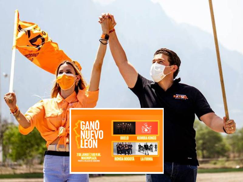 Para este evento que tiene como objetivo celebrar su triunfo en la entidad, contará con la participación de cuatro agrupaciones: Duelo, Kumbia Kings, Ronda Bogotá y La Firma. "Los esperamos hoy en punto de las 7:00 pm para celebrar que logramos sacar a la vieja política de Nuevo León", escribió Samuel García en Twitter.