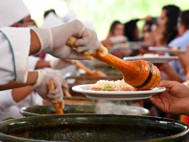 Durante la máxima fiesta se disfrutan platillos que nos identifican como oaxaqueños, señaló la cocinera tradicional, Catalina Lucas, originaria de Tlacolula de Matamoros; “las recetas más emblemáticas son el mole negro, la segueza, el estofado, el amarillo o el chichilo que se acompañan con dos piezas de carne como el guajolote, cerdo o pollo y arroz blanco”.