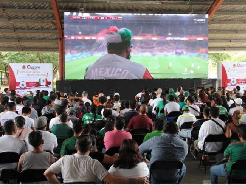 Cancún, 24 de noviembre .- Como parte de ¡Vive el Mundial en tu colonia!, este sábado se transmitirá en pantalla gigante, el encuentro de México y Argentina en Chetumal y Cancún, informó Eric Arcila Arjona, presidente de la Comisión para la Juventud y el Deporte de Quintana Roo (Cojudeq).