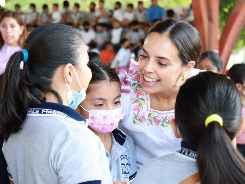 La Presidenta Municipal dio espacio en el micrófono para que las niñas y niños de primaria compartieran sus ideas sobre las profesiones y logros que las mujeres pueden alcanzar sin discriminación, destacando que 2023 es el Año de las Niñas y los Niños, por lo que el gobierno municipal seguirá realizando políticas públicas y programas que beneficien a la primera infancia para forjar el futuro de Cancún.