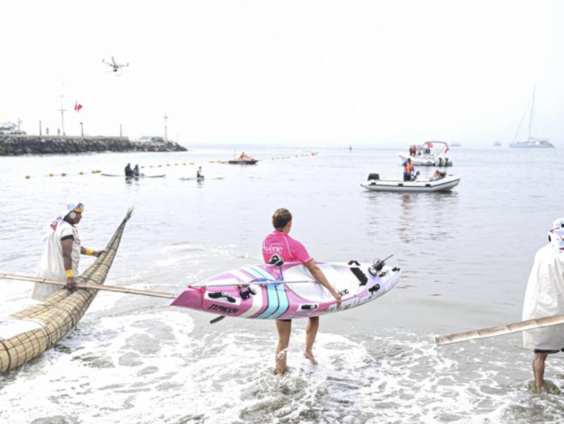 Seis mujeres, cinco francesas y una española, remaron 8 mil kilómetros y llegaron a la isla de Moorea, en la Polinesia Francesa, tras haber cruzado la mitad del océano Pacífico remando con los brazos sobre una tabla de paddle surf.
