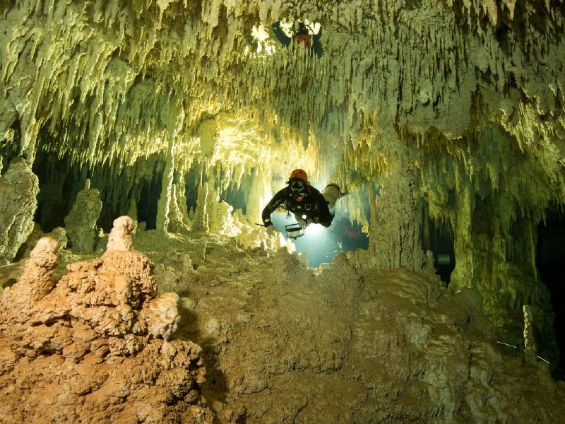 El autor del libro "Exploraciones del mundo subterráneo", detalló que la extensión total del acuífero en la Península de Yucatán es aún desconocida, pero tan solo entre los municipios de Cancún y Tulum, hay, como mínimo, más de dos mil kilómetros de una extensa red de cuevas inundadas, cenotes y pasajes cavernarios.