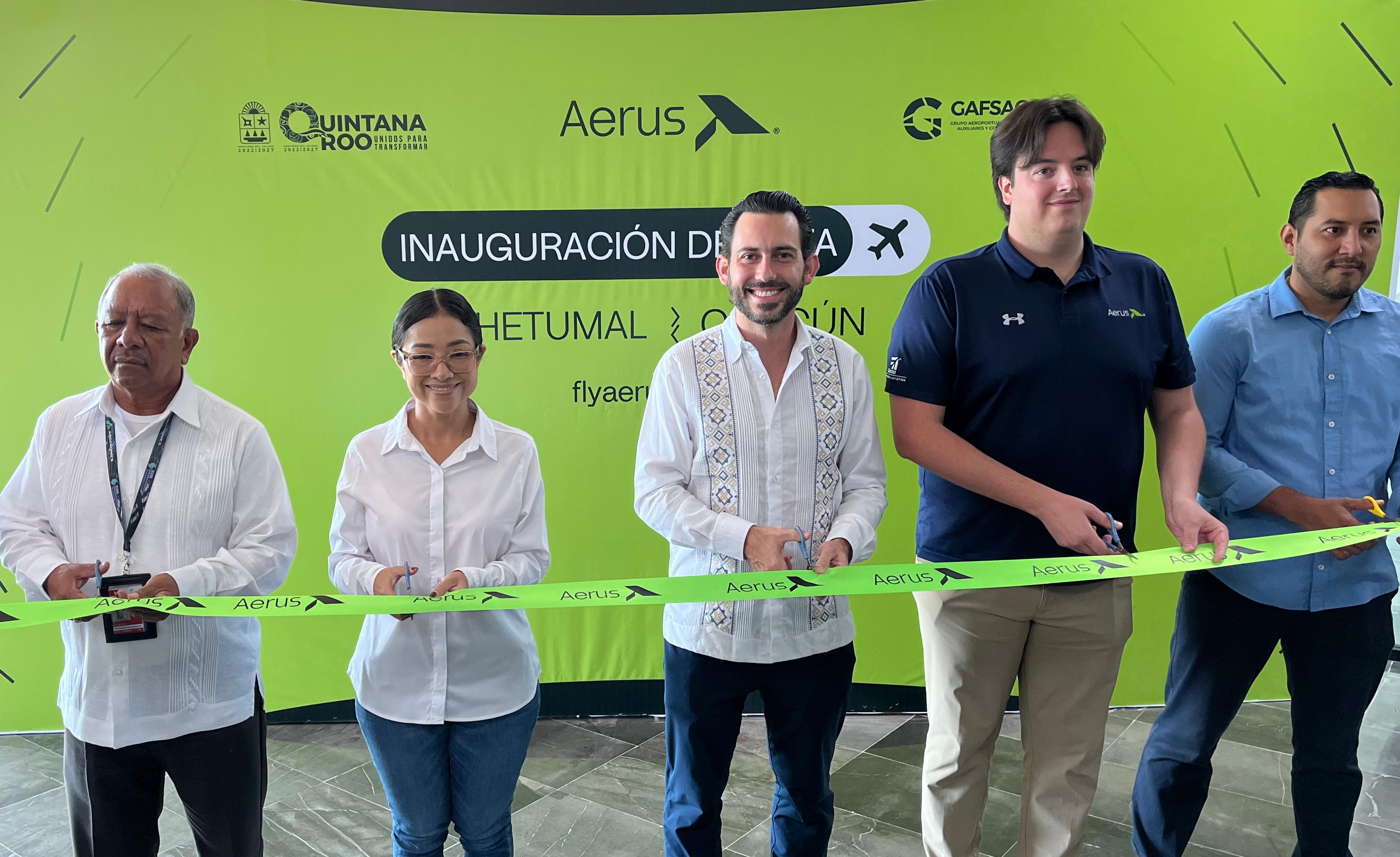 “En Aerus seguiremos trabajando para ampliar la conectividad aérea en México y nos da mucho gusto inaugurar la ruta Cancún-Chetumal-Cancún, porque a través de esta nueva ruta ofreceremos una alternativa eficiente de transporte aéreo que beneficiará a la población, y es una muestra más de nuestra contribución y compromiso con el desarrollo de la región”.