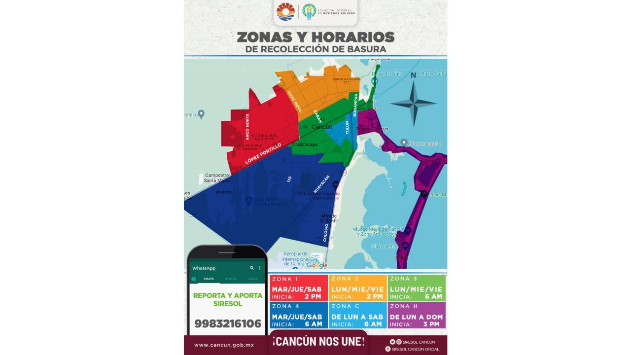 Mientras que en el caso de la Zona Hotelera, que está en la Zona H, se suspenderá el servicio de recolecta de residuos sólidos urbanos al término del primer turno que inicia a las 15:00 horas.
