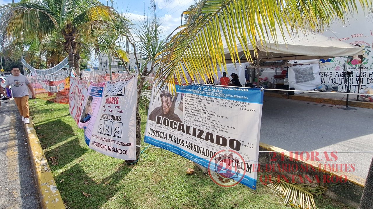 El Colectivo Madres Buscadoras de Quintana Roo bloquearon ayer la avenida Xcaret, frente a la Fiscalía General del Estado (FGE) en Benito Juárez.