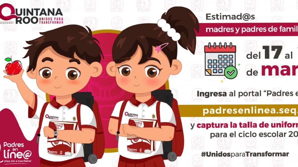 La Secretaría de Educación de Quintana Roo anunció la apertura del último periodo para la captura de talla de uniformes escolares del ciclo 2025-2026.