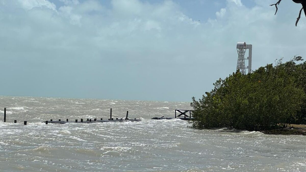 La playa artificial de Dos Mulas, uno de los espacios recreativos más populares en la bahía de Chetumal, desapareció temporalmente debido al fenómeno natural conocido como surada.