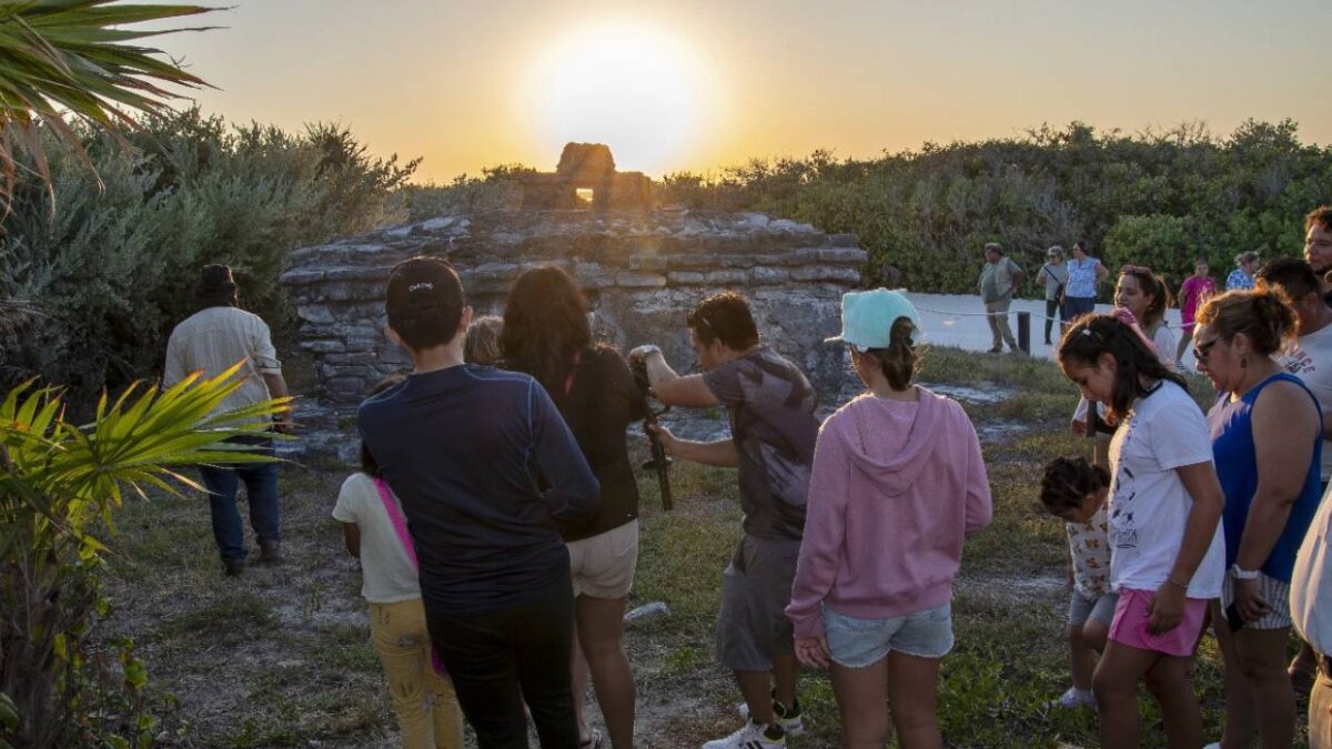 Desde las seis de la tarde, decenas de familias cozumeleñas se reunieron para presenciar cómo el sol se alineaba perfectamente con la ventana superior de “El Caracol”, una estructura del periodo postclásico tardío (1200–1500 d.C.). Su cúpula —inusual en la arquitectura mesoamericana— da testimonio del profundo conocimiento astronómico de los antiguos mayas.