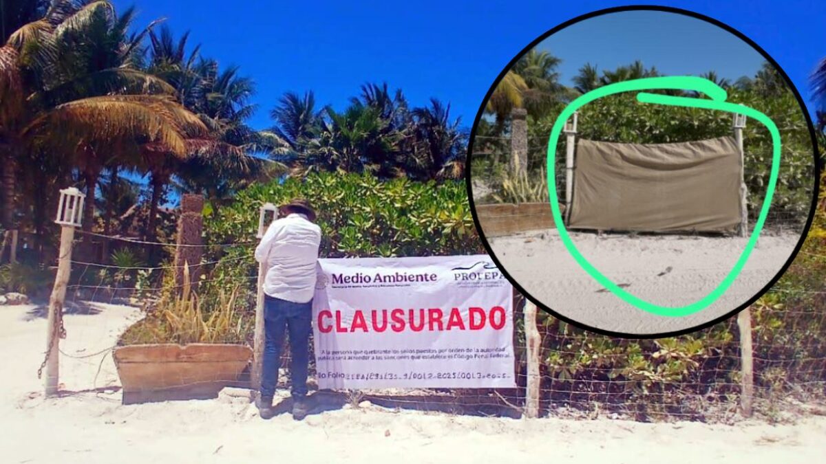 En plena temporada vacacional, un acto de desacato a la autoridad ambiental federal ha generado polémica en Holbox. A menos de 24 horas de que la Procuraduría Federal de Protección al Ambiente (Profepa) colocara sellos de clausura en un predio ubicado en esta isla del Caribe mexicano —específicamente en un club de playa conocido como La Playa de Ñaña—, los responsables del lugar procedieron a ocultarlos con lonas de tela.