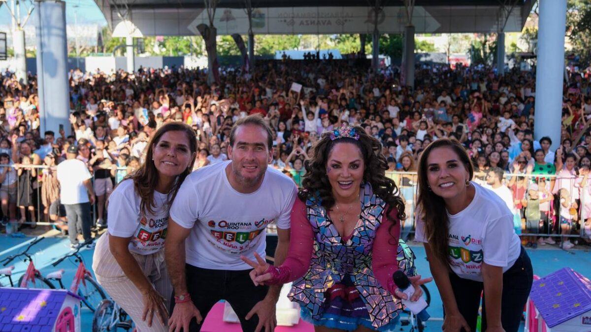 Durante el festejo, la presidenta honoraria del DIF Quintana Roo, Verónica Lezama, compartió su emoción al ver a miles de niñas y niños disfrutar con entusiasmo cada actividad: