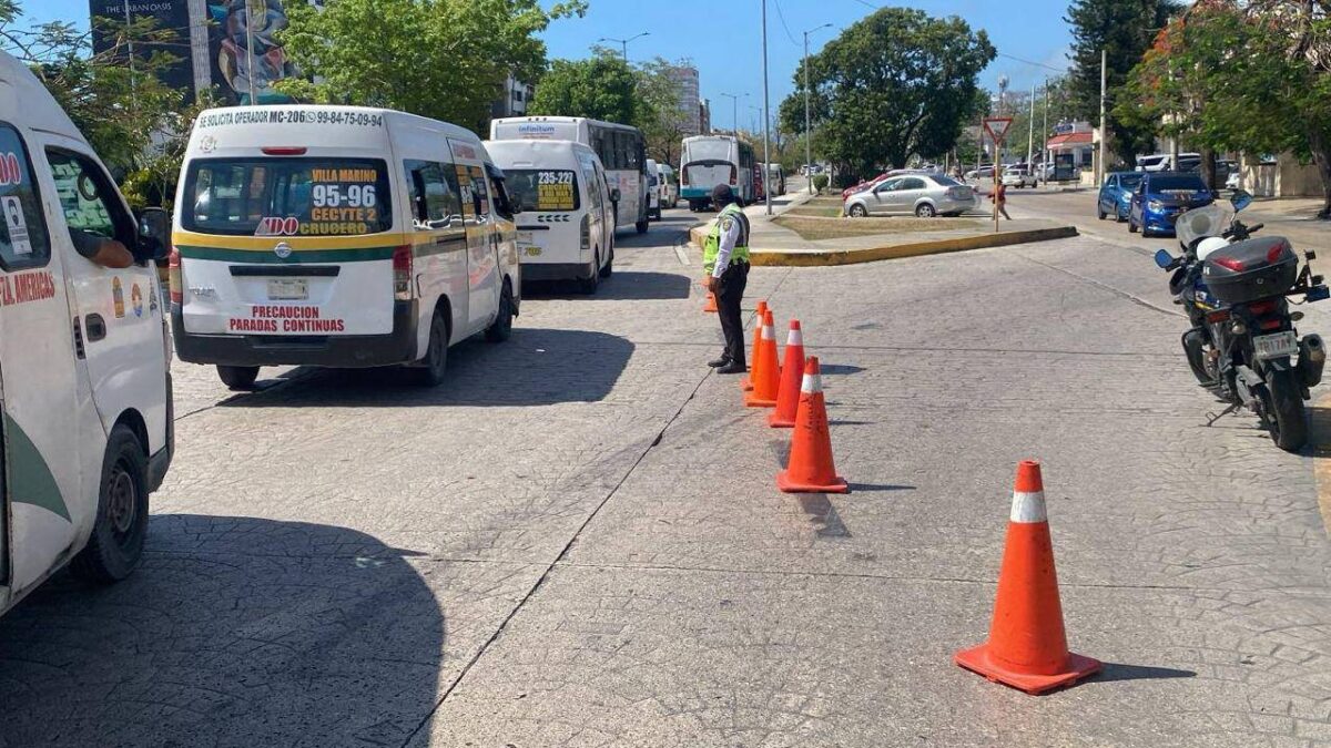 - En el cruce de avenida Kabah con avenida Huayacán, se mantiene confinado el carril de baja velocidad para facilitar el flujo vehicular en dos carriles desde Huayacán hacia Kabah.