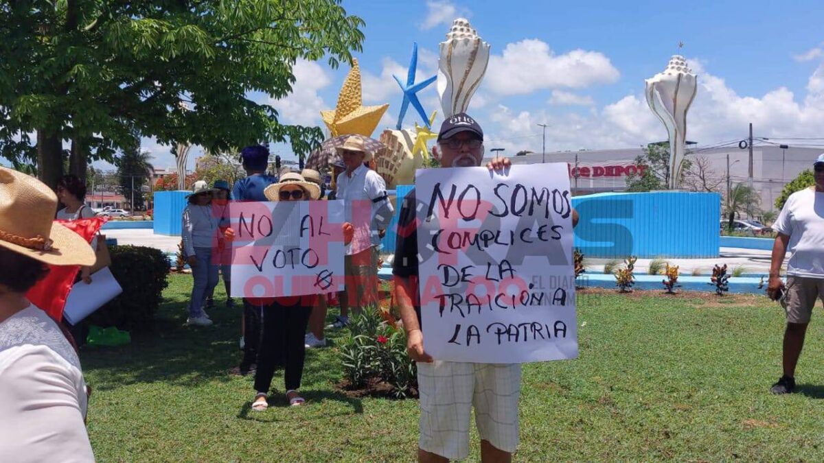 Este domingo, 1 de junio, más de una veintena de ciudadanos se reunieron en la glorieta Fantasía Caribeña —popularmente conocida como la glorieta del Ceviche— para manifestarse en contra del proceso electoral que actualmente se vive en Quintana Roo y el resto del país.