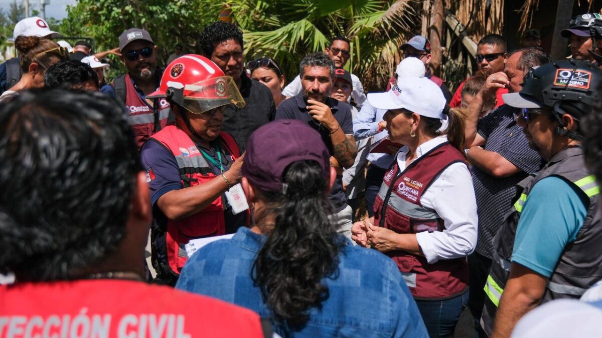 A la gobernadora la acompañaron la secretaria de Gobierno, Cristina Torres Gómez; el titular de SEMA, Óscar Rébora; y el coordinador general de Protección Civil, Guillermo Núñez Leal, reafirmando el compromiso del gobierno estatal con la recuperación de Holbox.