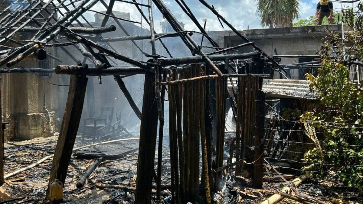 Un incendio registrado en una vivienda construida con materiales de la región dejó daños aún no cuantificados sobre la calle Lázaro Cárdenas, en la colonia Centro de Kantunilkín.