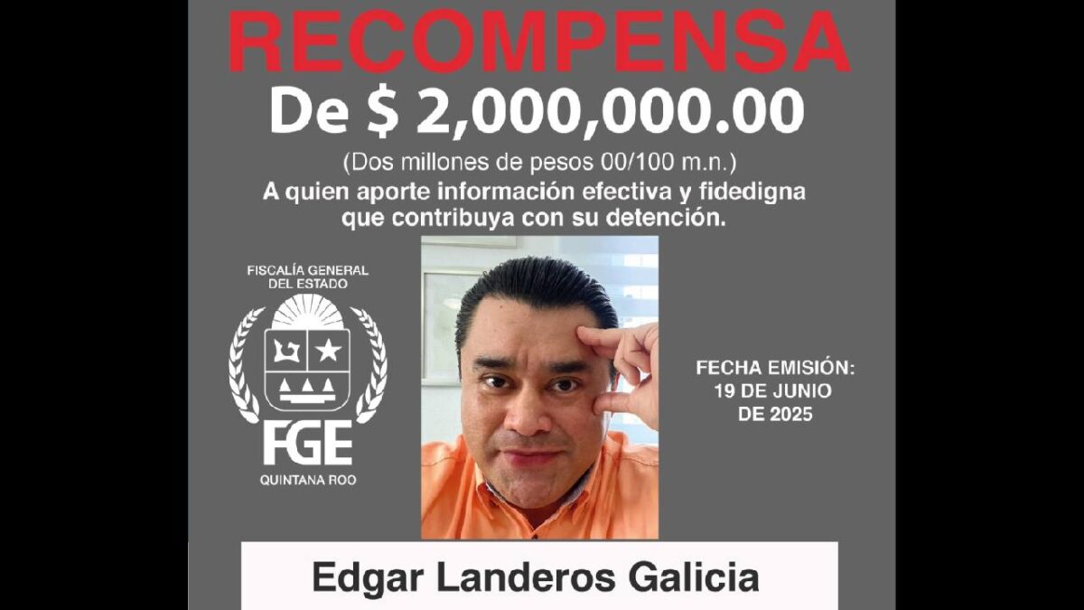La #FGEQuintanaRoo ofrece #recompensa de dos millones de pesos a quien aporte información efectiva y fidedigna que contribuya con la detención de la persona identificada como Edgar Landeros Galicia.