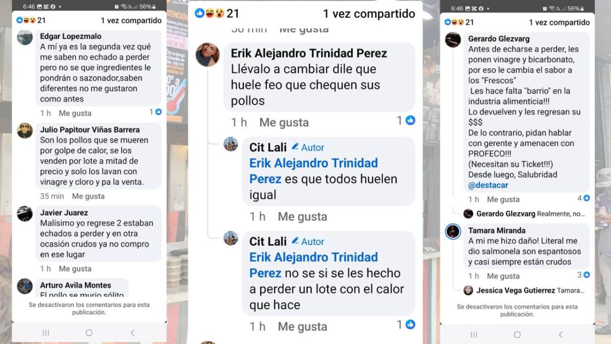 A través de redes sociales, ciudadanos han denunciado la presunta venta de pollo en mal estado en la rosticería Rozt, ubicada sobre la avenida 135, a la altura del fraccionamiento Villa Marino, en el Polígono Sur de Cancún.
