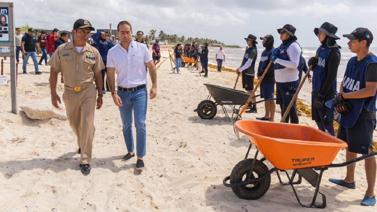 Además, indicó que se cuenta con una barrera anti sargazo de 2,250 metros y que se desplegarán dos embarcaciones en altamar para mitigar la llegada de la macroalga a la costa, fortaleciendo así el trabajo de limpieza en tierra.