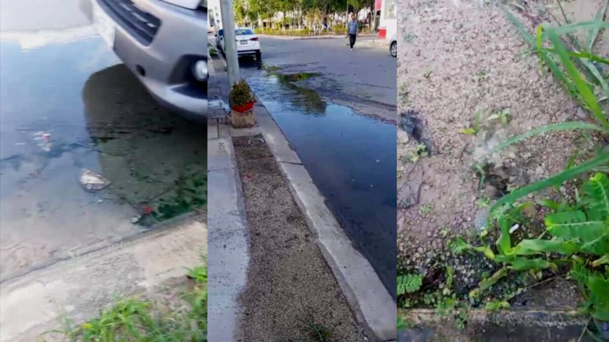 El problema se ubica específicamente en la calle Membrillo del Circuito Tulipán, donde el agua brota desde la banqueta y se derrama por la vialidad.