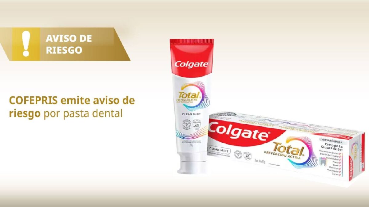 La Comisión Federal para la Protección contra Riesgos Sanitarios (Cofepirs) informó que el producto Crema Dental Colgate Total© Prevención Activa Clean Mint deberá retirarse de los puntos de venta en un plazo máximo de 30 días, tras recibir reportes de incidentes adversos en consumidores.