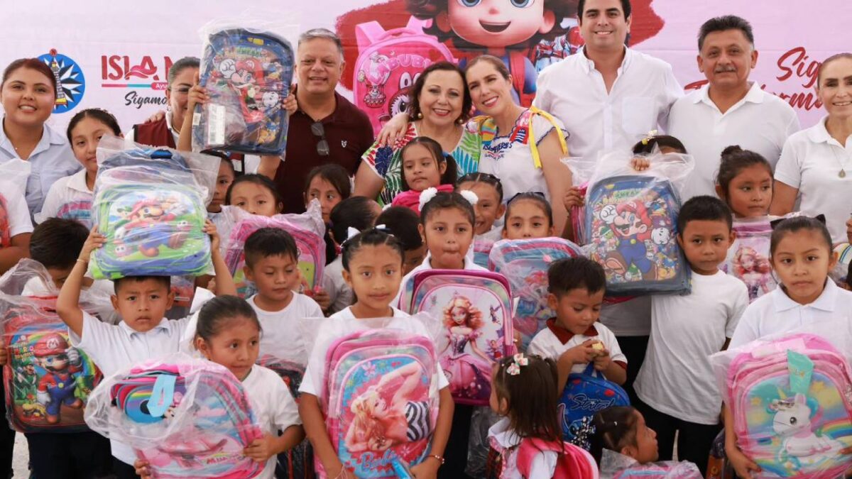 La presidenta municipal de Isla Mujeres, Atenea Gómez Ricalde, encabezó la entrega de mochilas nuevas como parte del programa Transformando la Educación: Mi Mochila, en beneficio de niñas y niños de la Zona Agrícola y la comunidad de Francisco May.