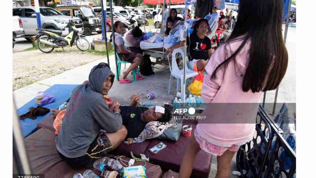 Niños heridos lloraban y los adultos gritaban mientras eran atendidos en camas instaladas bajo carpas azules frente al Hospital Provincial de Cebú. Como medida preventiva, y ante las réplicas que se sucedieron durante la noche, fueron trasladados al exterior.