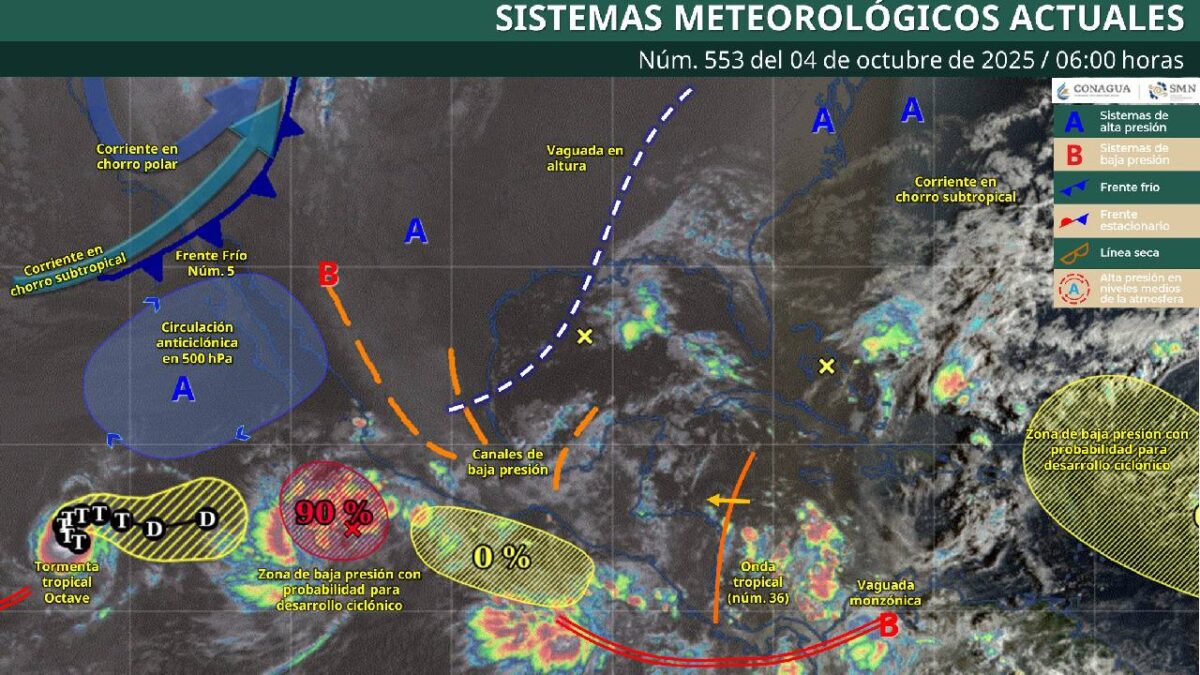 Al finalizar el día, se prevé la aproximación de la onda tropical número 36, la cual reforzará las precipitaciones en la región.