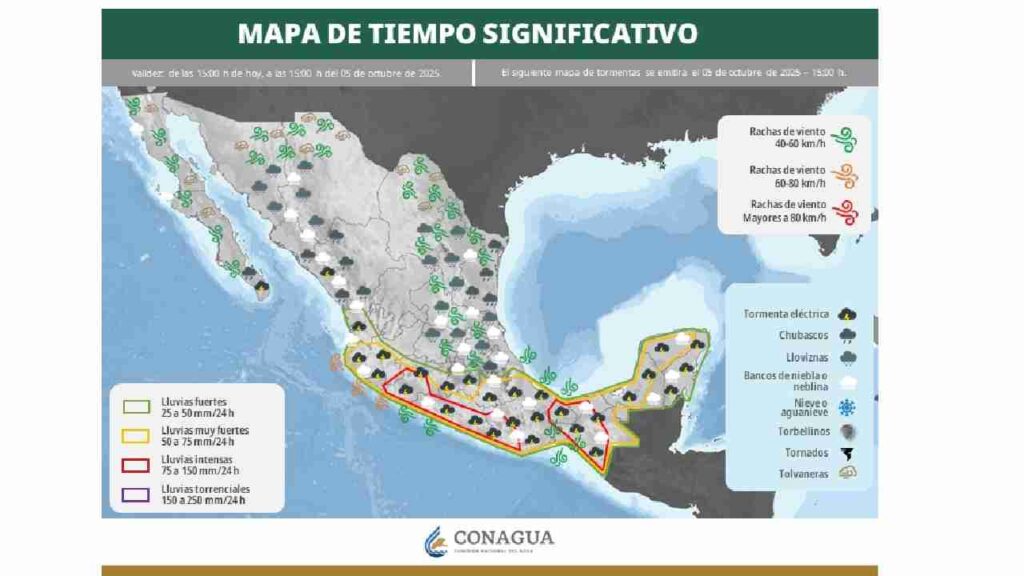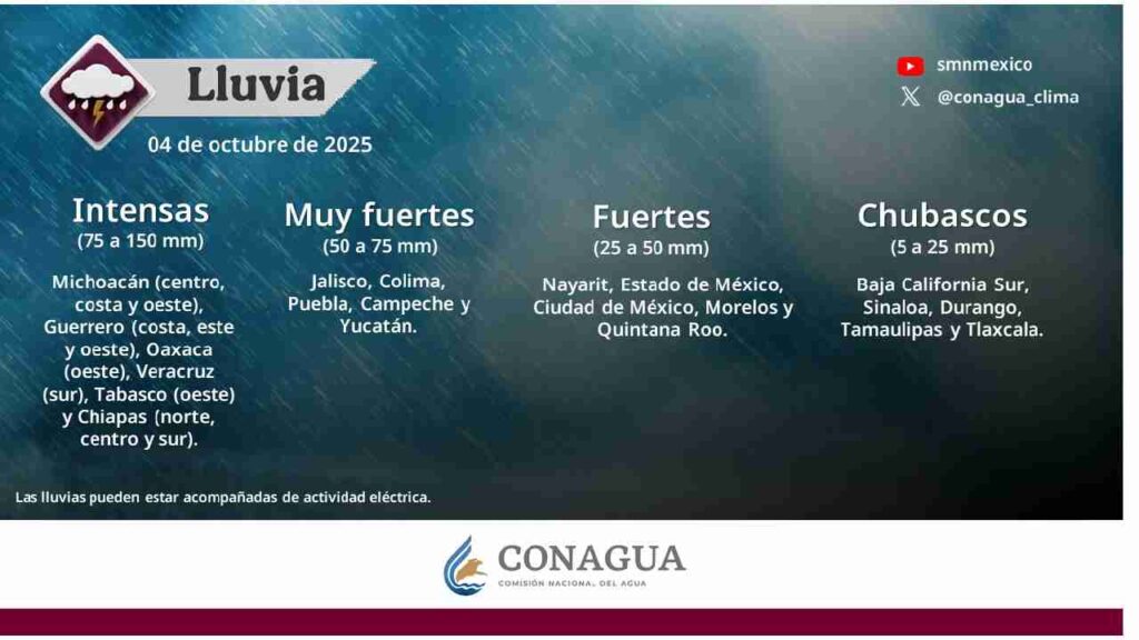 Autoridades estatales exhortan a la población a mantenerse informada mediante los boletines meteorológicos oficiales y tomar precauciones por posibles encharcamientos y ráfagas de viento.