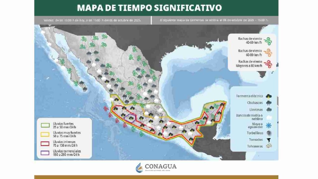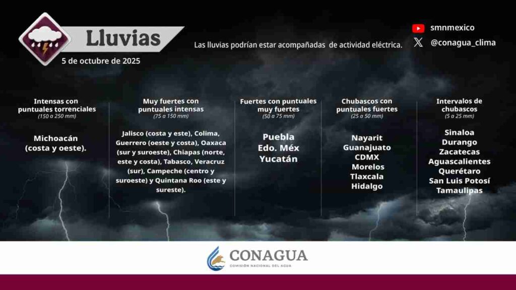 - Lázaro Cárdenas: Cielo nublado, lluvias intensas y ambiente caluroso. Máx. 35 °C / Mín. 25 °C.