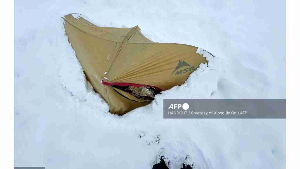 Un excursionista contactado por AFP compartió en redes sociales videos de carpas en esa zona cubiertas casi por completo de nieve.