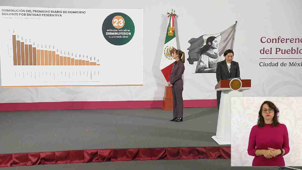 Según el reporte de la Secretaría Ejecutiva del Sistema Nacional de Seguridad Pública, el promedio diario de delitos ha disminuido un 46% desde 2018, incluyendo feminicidios, robos con violencia, robo a transportistas y lesiones dolosas.