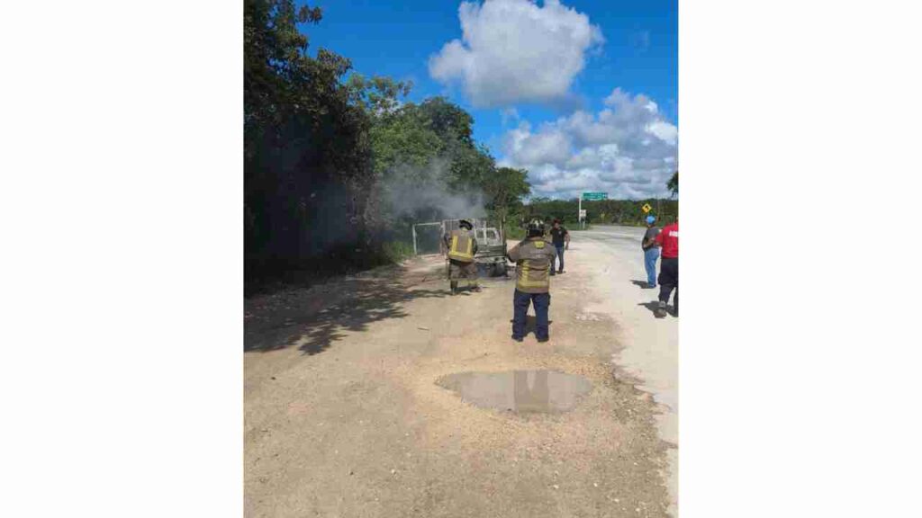 El incendio de una camioneta particular se registró este jueves sobre la autopista Cancún-Mérida, sin que se reportaran personas lesionadas.