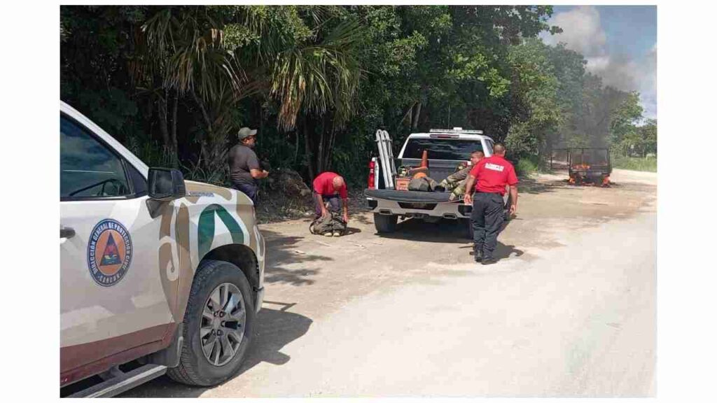 Asimismo, el incendio, que generó una columna de humo visible a varios metros de distancia, fue controlado de manera oportuna por elementos de Protección Civil y el Cuerpo de Bomberos de Cancún.