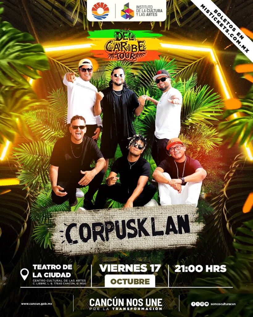 Corpusklan aprovechará la ocasión para cerrar su gira “Caribe Tour 2025”, que también contempla presentaciones en Mérida (16 de octubre) y Chetumal (18 de octubre).