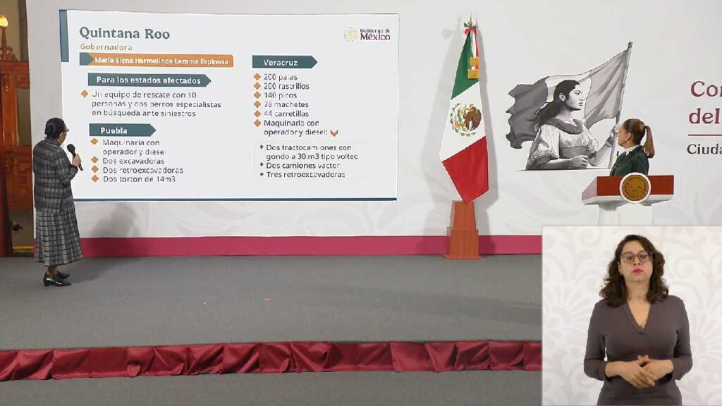 Rosa Icela Rodríguez también informó sobre las contribuciones de otros estados, como Baja California, Chiapas, Campeche, Ciudad de México y Nuevo León, que enviaron víveres, maquinaria y personal médico.
