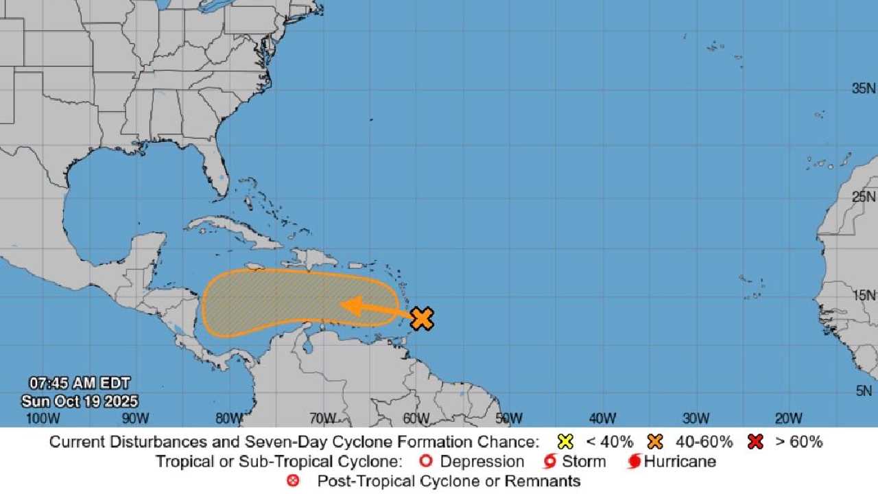 Asimismo y de acuerdo con el Centro Nacional de Huracanes (NHC), el sistema mantiene un 10% de probabilidad de desarrollo en 48 horas, pero aumenta a 60% en los próximos siete días.