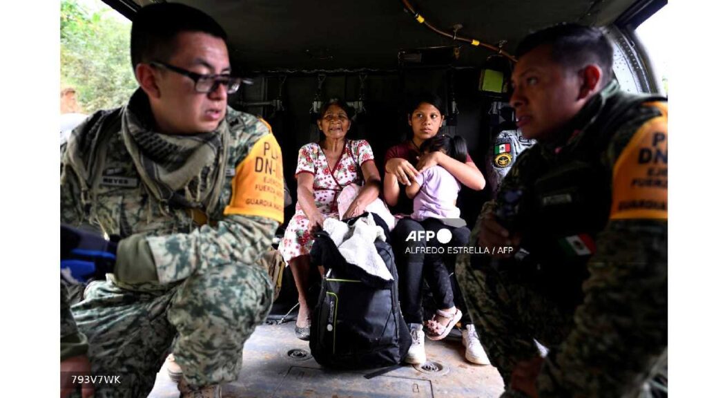 Más de 12 mil 700 elementos del Ejército y la Marina continúan desplegados en los estados impactados, con operaciones terrestres, aéreas y marítimas para trasladar víveres y rescatar a poblaciones aisladas.