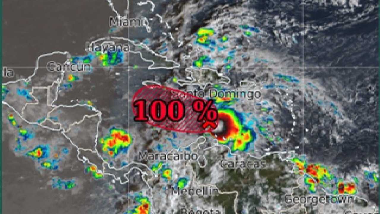 La zona de baja presión asociada con una onda tropical al oeste de las Antillas Menores incrementó a 100% su probabilidad de desarrollo ciclónico en las próximas 48 horas y también en 7 días.