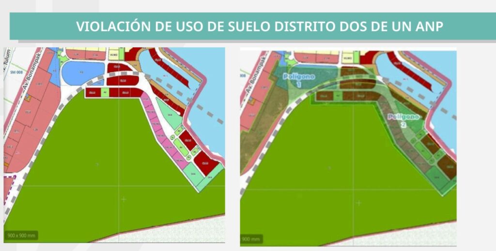De acuerdo con el peritaje judicial de la especialista Patricia Eugenia Espinosa Ruiz, solicitado por la organización Derecho al Medio Ambiente Sano (DMAS), ambos instrumentos asignaron usos turísticos, habitacionales y de equipamiento en manglares, humedales y sitios Ramsar, violando decretos federales de protección ambiental.