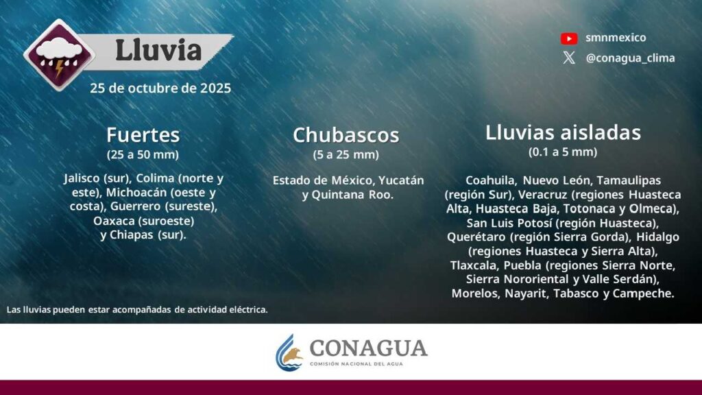 — CONAGUA Clima (@conagua_clima) October 26, 2025