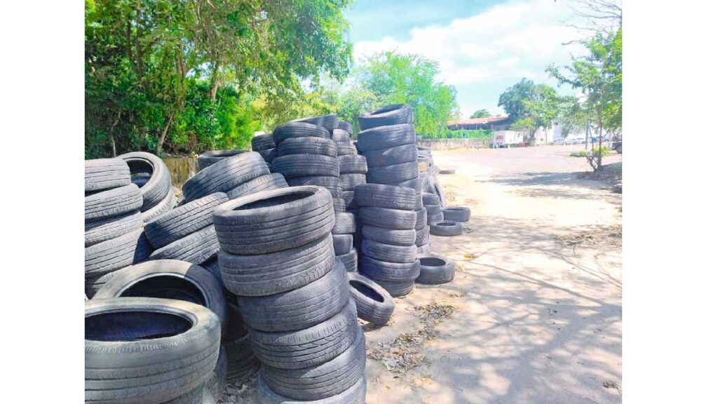 Mientras tanto, cientos de neumáticos permanecen apilados detrás de las instalaciones de la Secretaría de Seguridad Ciudadana (SSC) en Chetumal.