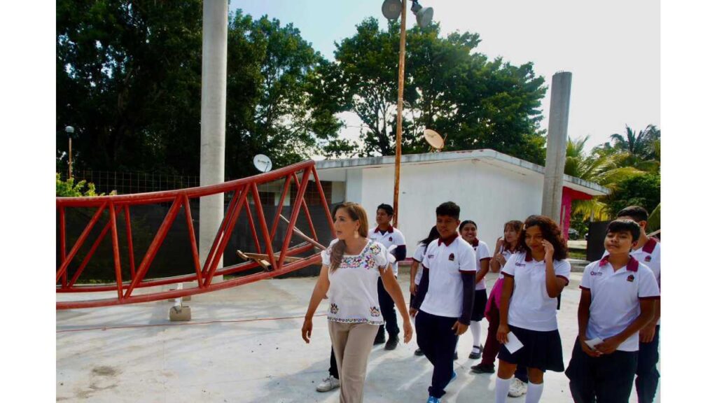 La comunidad educativa de Huay-Pix, en Othón P. Blanco, celebra la supervisión de la construcción del domo en la telesecundaria “Luis Donaldo Colosio Murrieta” por parte de la gobernadora Mara Lezama Espinosa.