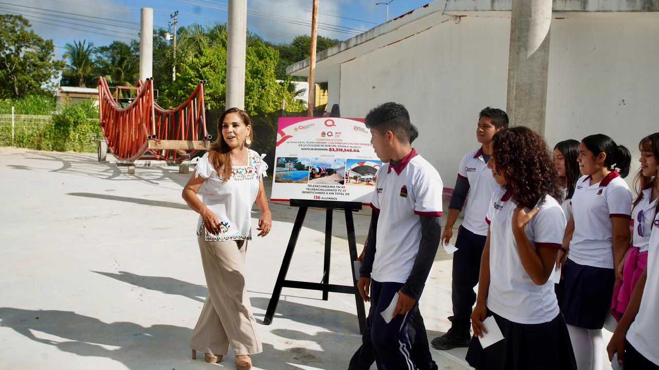 La comunidad educativa de Huay-Pix, en Othón P. Blanco, celebra la supervisión de la construcción del domo en la telesecundaria “Luis Donaldo Colosio Murrieta” por parte de la gobernadora Mara Lezama Espinosa.