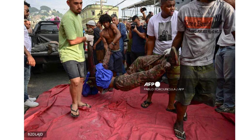 Vecinos de una favela del norte de Río de Janeiro recuperaron más de 40 cuerpos alineados en una plaza la mañana de este miércoles, un día después de la operación policial más sangrienta en la historia de la ciudad contra el narcotráfico.