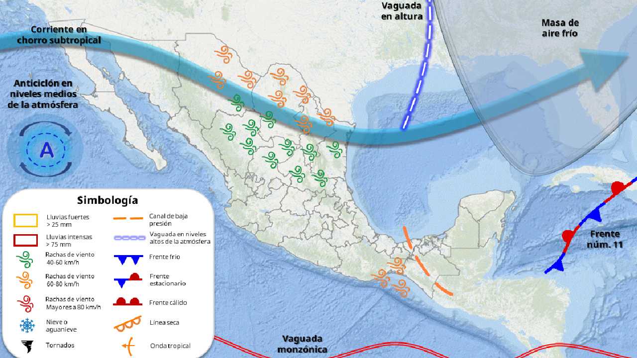 También destaca la Coeproc que el viento se mantendrá del norte y noreste con rachas de hasta 50 km/h sobre las zonas de costa del estado.