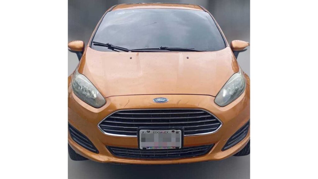 - Un vehículo Ford Fiesta color naranja con placas del Estado de México.